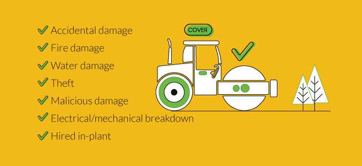 Contractors’ plant and equipment insurance covers hired and owned in-plant machinery against theft, accidental damage, fire damage, third party risks and more. It’s vital to cover all bases in order to protect against expensive repairs, replacements, or claims.